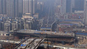 2014-01-15 10:45武漢跨鐵路立交橋上演“空中轉(zhuǎn)體”