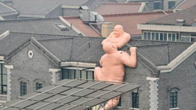 1月19日,兩尊“裸佛攀房”藝術(shù)雕塑亮相濟(jì)南,“小沙彌”憨態(tài)可掬的攀房造型吸引不少路人觀看。圖為雙手合十“裸佛”召喚“小沙彌”攀房。中新社發(fā) 張勇 攝[詳細(xì)]