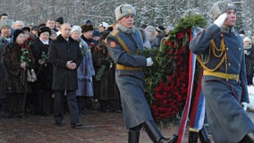 2014-01-30 09:07普京單膝跪地獻花 紀念列寧格勒保衛(wèi)戰(zhàn)勝利70周年