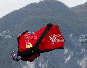 環(huán)渝網(wǎng)絡(luò)媒體記者聚龍缸 見(jiàn)證翼裝飛行挑戰(zhàn)廊橋