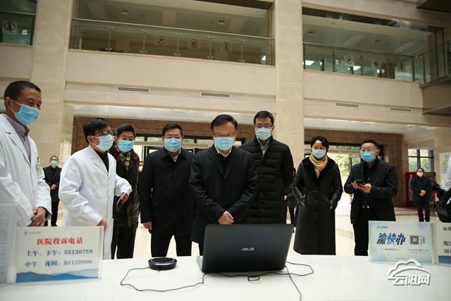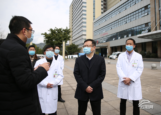屈謙一行到縣人民醫(yī)院、縣中醫(yī)院,查看了發(fā)熱門診設(shè)置、定點(diǎn)隔離救治等疫情防控措施、醫(yī)療設(shè)施設(shè)備,詳細(xì)了解云陽(yáng)疫情防控工作開展情況,并通過(guò)現(xiàn)場(chǎng)視頻連線,看望慰問(wèn)一線醫(yī)護(hù)人員。