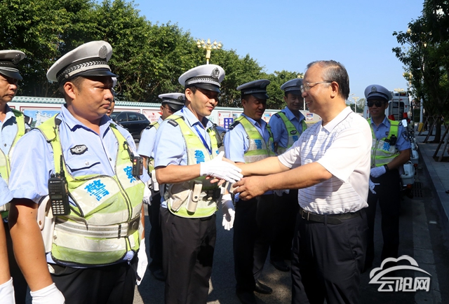 在交巡警現(xiàn)場(chǎng)執(zhí)勤點(diǎn),張學(xué)鋒和交巡警們親切握手,感謝他們?yōu)榫S護(hù)交通安全、有序、暢通所作出的貢獻(xiàn)。張學(xué)鋒說,高溫酷暑天氣給戶外工作的交巡警帶來嚴(yán)峻考驗(yàn),但大家依然堅(jiān)守崗位,不怕吃苦、不怕流汗,用實(shí)際行動(dòng)保障了交通秩序井然。希望大家繼續(xù)發(fā)揚(yáng)優(yōu)良工作作風(fēng),加強(qiáng)巡邏值守,規(guī)范文明執(zhí)法,保障正常交通秩序。同時(shí),社會(huì)各界也要體諒交巡警的辛苦,自覺遵守交通規(guī)則,共同維護(hù)好云陽文明縣城的良好形象。