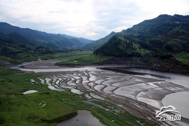 高陽平湖位于云陽西北部,是長江一級支流——彭溪河連接長江的最大湖泊,庫岸線總長70公里,是因三峽水庫蓄水倒灌,經彭溪河流域而形成的50余平方公里的巨大平湖。周圍是連綿起伏的群山,海拔高度在100米—1100米,群山攬一灣碧水。據不完全統(tǒng)計,湖泊水域有半島15個,湖心島4個,湖濱半島交錯,湖汊港灣縱橫,形成湖光山色融為一體的美麗景觀。隨著長江三峽庫區(qū)水位水位的下降,隱藏在水下的層層梯田漸漸露出水面,當蓄水消落至150米左右時,高陽平湖呈現出“水元陽”景觀。