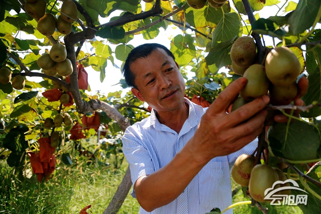 進(jìn)入任意一家獼猴桃采摘基地,陽光透過片片綠葉,照在掛滿枝頭的果實(shí)上,一股清新的芬芳四溢開來,果樹架子與人齊高,藤蔓上如拳頭般大小的獼猴桃長勢喜人,一個(gè)接一個(gè)地偎在一起,一片豐收在望的景象,讓人垂涎欲滴。