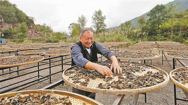 近日,泥溪鎮(zhèn)黑木耳生產(chǎn)基地,村民正在晾曬黑木耳,豐收的喜悅寫(xiě)在臉上。李充 攝