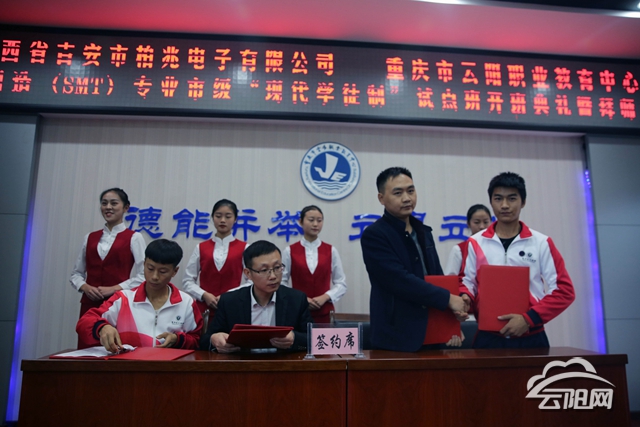 云陽(yáng)網(wǎng)訊(記者 劉興敏)“師傅,請(qǐng)喝茶!”11月15日,云陽(yáng)職教中心“電子電器應(yīng)用與維修”的5名學(xué)生,向江西省吉安市井開(kāi)區(qū)眾籌柏兆電子有限公司工程部SMT高級(jí)工程師易奇敬茶,向他拜師學(xué)藝。