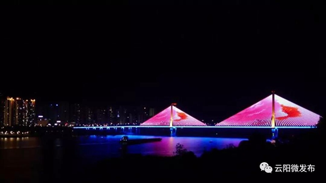游客在盤龍街道農(nóng)家樂(lè)里拍攝的大橋夜景
