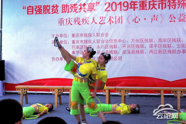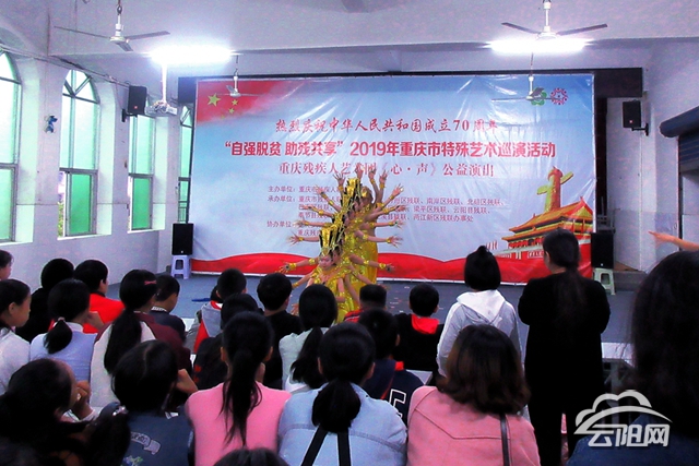 云陽網(wǎng)訊(記者 李充 通訊員 鄭章彥)“自強(qiáng)脫貧,助殘共享?!?0月21日,重慶殘疾藝術(shù)團(tuán)《心·聲》公益演出在人和初級(jí)中學(xué)大禮堂舉行,該校師生共同觀看了這場(chǎng)精彩而感人的表演。