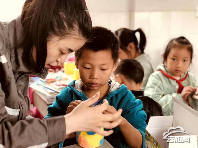 青年志愿者們通過給孩子們講解基礎(chǔ)樂理,培養(yǎng)孩子們對(duì)音樂的興趣,和孩子們一起制作屬于自己的筆筒,讓孩子們鍛煉動(dòng)手能力;在朗誦課上,青年志愿者用慷慨激昂、聲情并茂的范讀,教會(huì)孩子們用語言和聲音勇敢表達(dá)自己。課堂上的歡聲笑語響徹山間,為靜謐的貧困山區(qū)增添了歡樂。