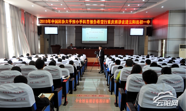 云陽(yáng)網(wǎng)訊(記者 鄭紅均 通訊員 張慶華)10月23日,中國(guó)科協(xié)大手拉小手科普?qǐng)?bào)告希望行重慶巡講走進(jìn)云陽(yáng)縣第一初級(jí)中學(xué),為全校師生帶來一場(chǎng)科普盛宴,進(jìn)一步激發(fā)師生們愛科學(xué)、學(xué)科學(xué)、用科學(xué)的熱情。