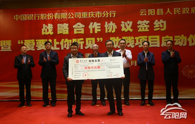 云陽網訊(記者 楊梅娜 丁齊)愛心點燃希望,奉獻成就夢想。10月30日,中國銀行“愛要讓你聽見”助殘扶貧項目啟動儀式在我縣舉行。