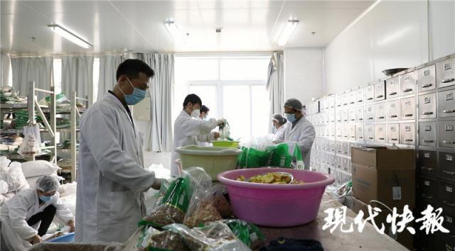 現(xiàn)代快報訊 一包包中藥在工廠里煎好、包裝,裝上車,分送到方艙醫(yī)院、各個社區(qū)隔離點,再交到患者和隔離留觀者的手里。