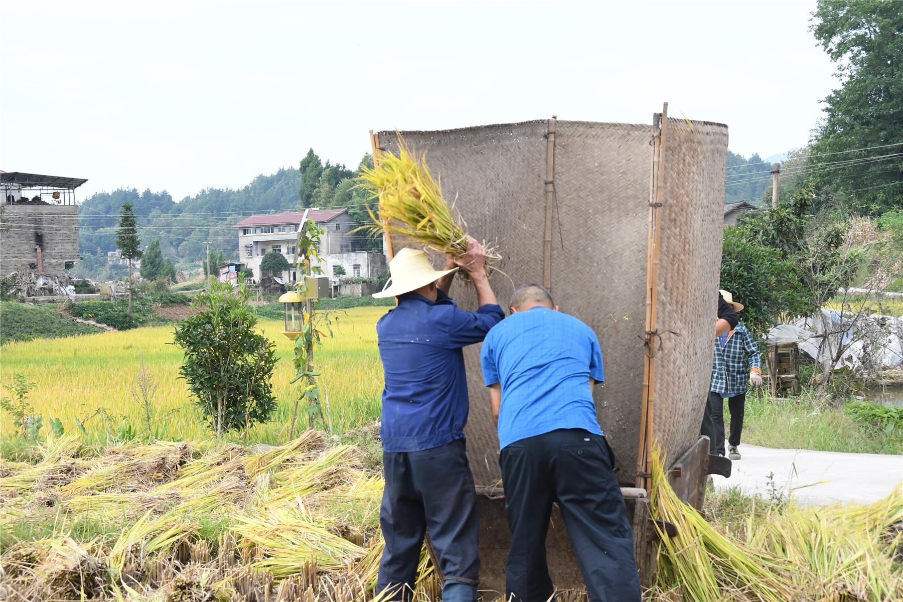大陽鎮(zhèn)雞鳴村村民王緒元告訴記者,今年他種了0.4公頃稻田,每公頃稻田產(chǎn)量在7500公斤左右。現(xiàn)在他們用打谷機(jī)翻打稻谷比以往人工打谷效率高,人也輕松很多。