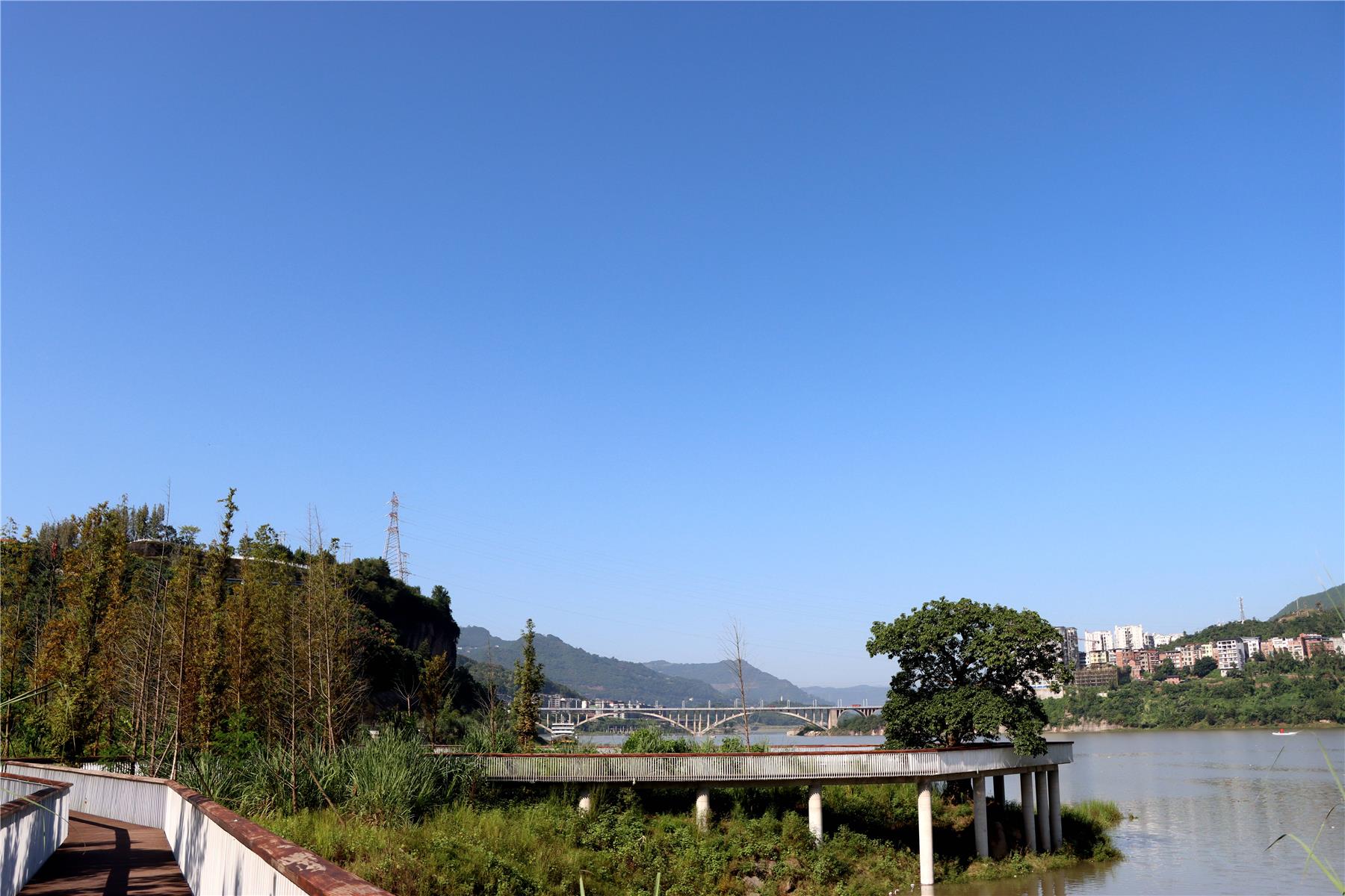 金秋時(shí)節(jié),藍(lán)天白云下,一只白鷺悄悄飛到公園最南端的岸邊覓食,它所停之處,尤不起眼,此處便是公園的夏季廣場。秋冬季,當(dāng)三峽水庫蓄水到175米時(shí),這里一灣碧水映眼簾。春夏季,當(dāng)水位消退后露出大面積平臺(tái),又是一片廣場鬧碧霄。