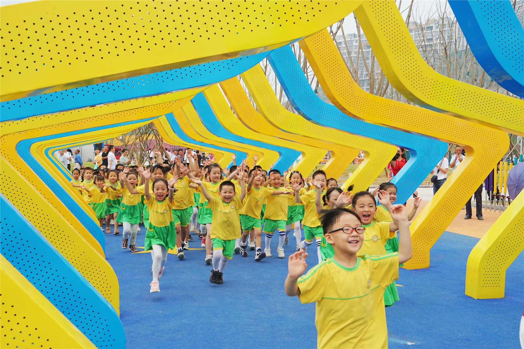 當天,杏家灣幼兒園組織了各個班的小朋友在不同的游樂項目前開展活動。伴隨著歌聲,一群小朋友活蹦亂跳地奔向鏡頭和市民朋友打招呼,為彩云陽光兒童公園開園送上祝福。