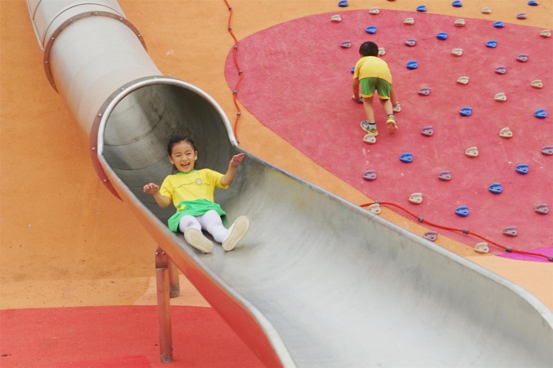 此外,除了有小朋友蕩著秋千、玩著攀巖、滑滑梯,活蹦亂跳穿梭在公園各處,也有不少“大朋友”在體驗游玩項目,回憶童年,他們還帶著相機為孩子記錄下美好的瞬間。