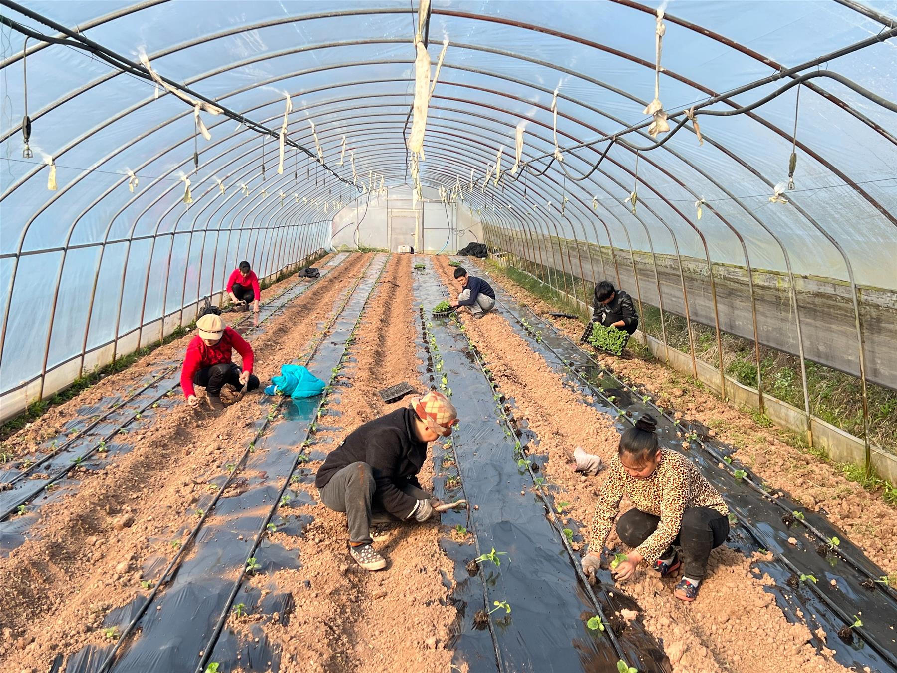 鏟除雜草、平整土地、安裝管道……日前,人和街道桃園社區(qū)水硐蔬菜種植專業(yè)合作社種植基地里,菜農(nóng)們正在大棚內(nèi)精耕細(xì)作,移栽蔬菜幼苗,現(xiàn)場一片忙碌景象。