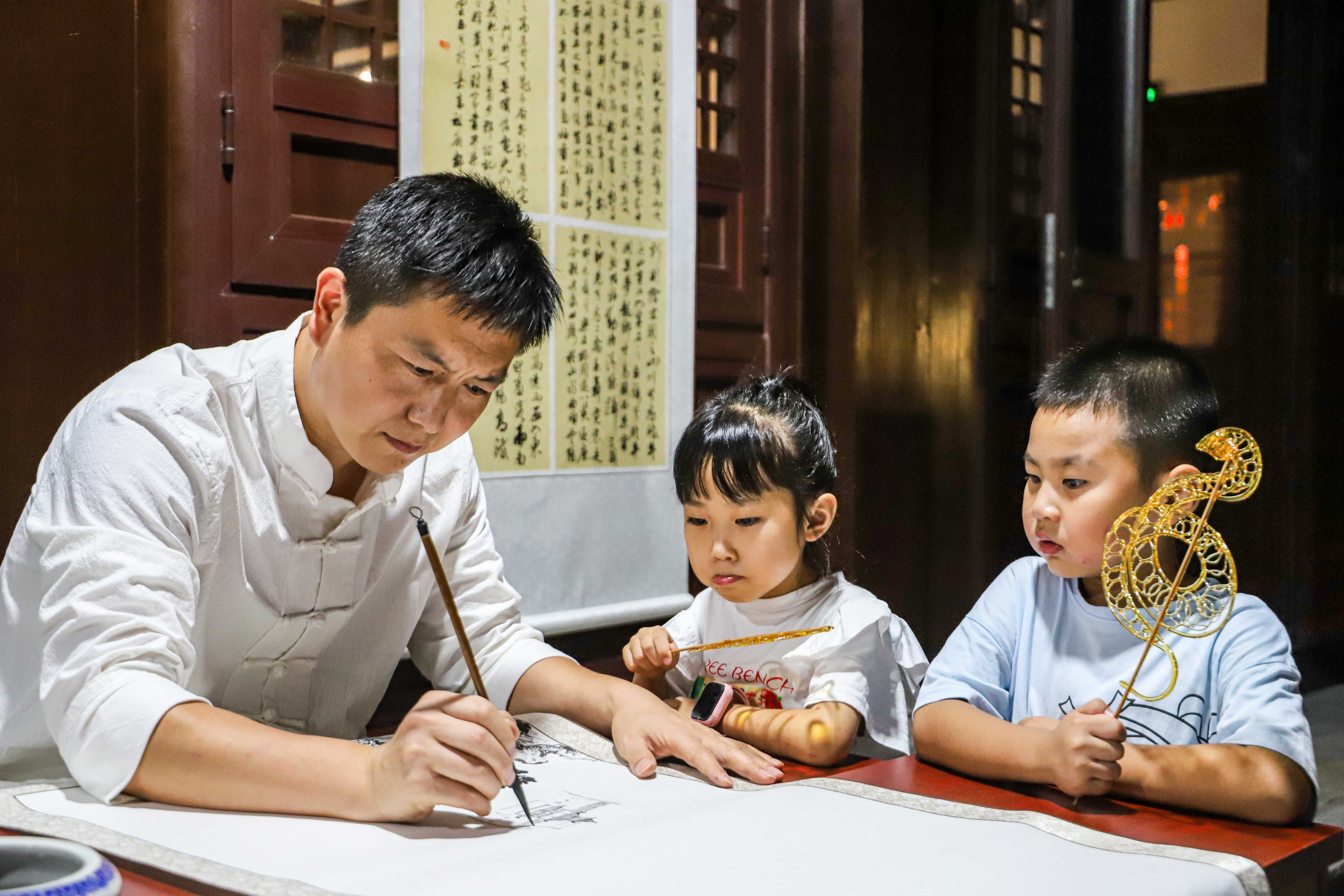 “今天正好到三國(guó)印巷來(lái)玩,看到可以免費(fèi)書(shū)寫(xiě),感覺(jué)非常有意思?!笔忻裢趺祷勰玫綄?xiě)著“但愿人長(zhǎng)久,千里共嬋娟”的書(shū)畫(huà)作品,喜悅的心情溢于言表。