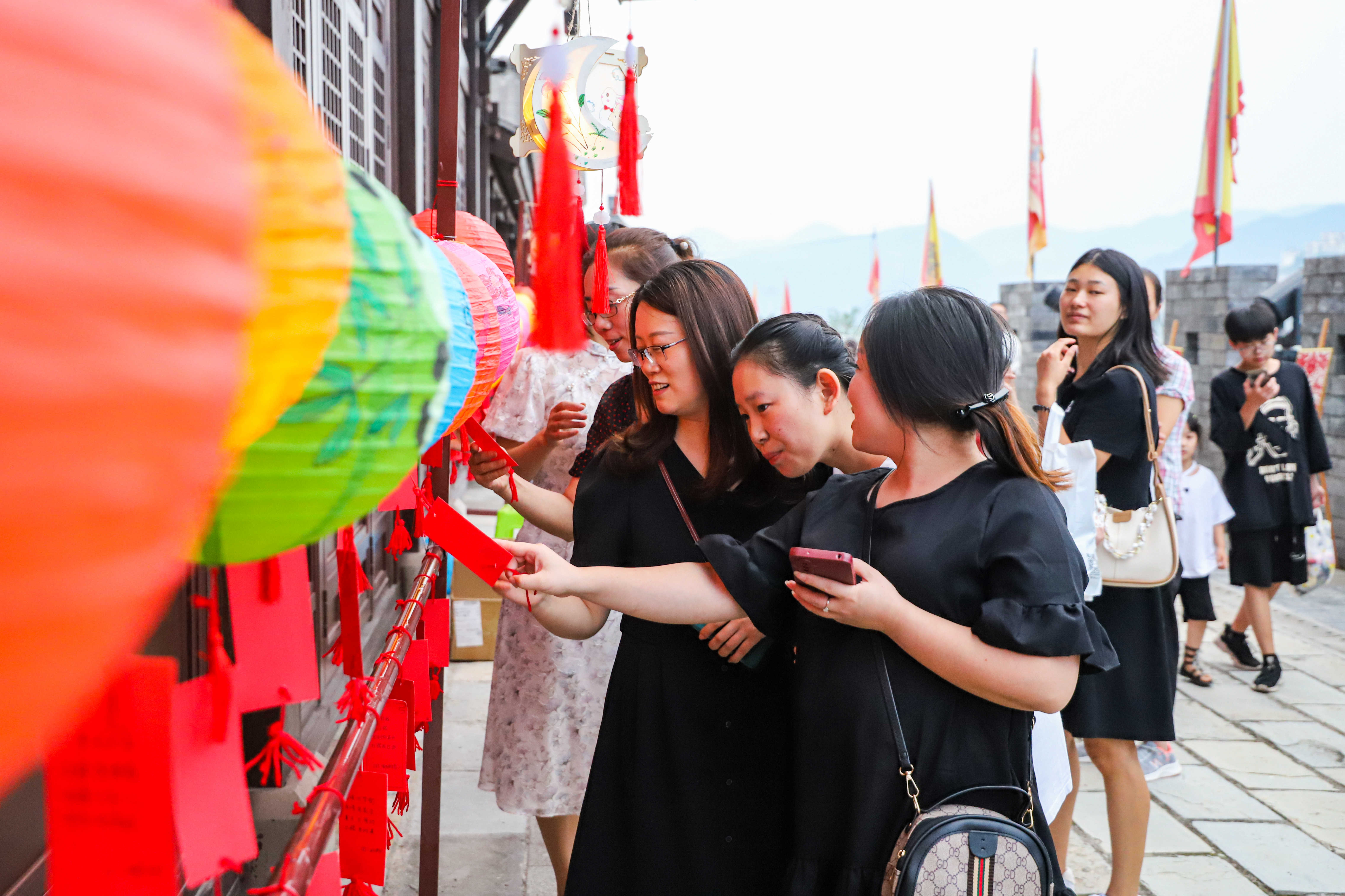 除了贈(zèng)送書(shū)畫(huà)作品,在三國(guó)印巷城樓下還設(shè)置了三處極富中秋元素的打卡點(diǎn),供市民游客拍照留戀。此外,還有志愿者現(xiàn)場(chǎng)手把手教市民制作燈籠、賀卡、剪紙等傳統(tǒng)手工品。