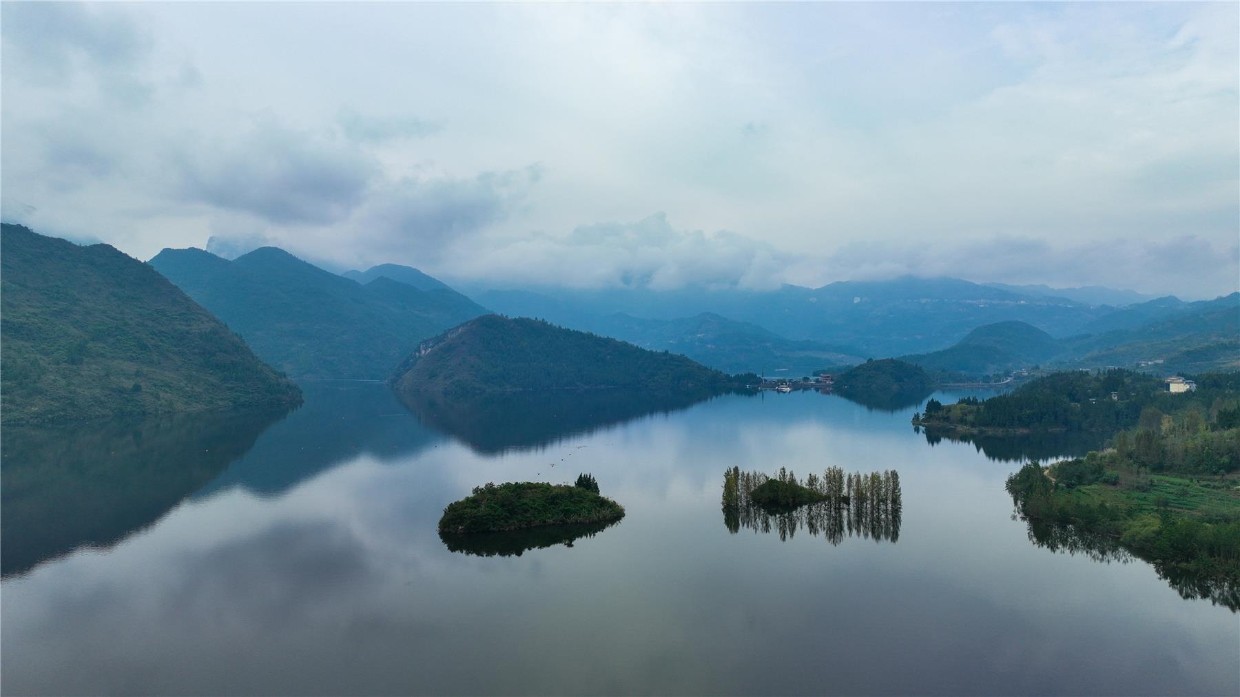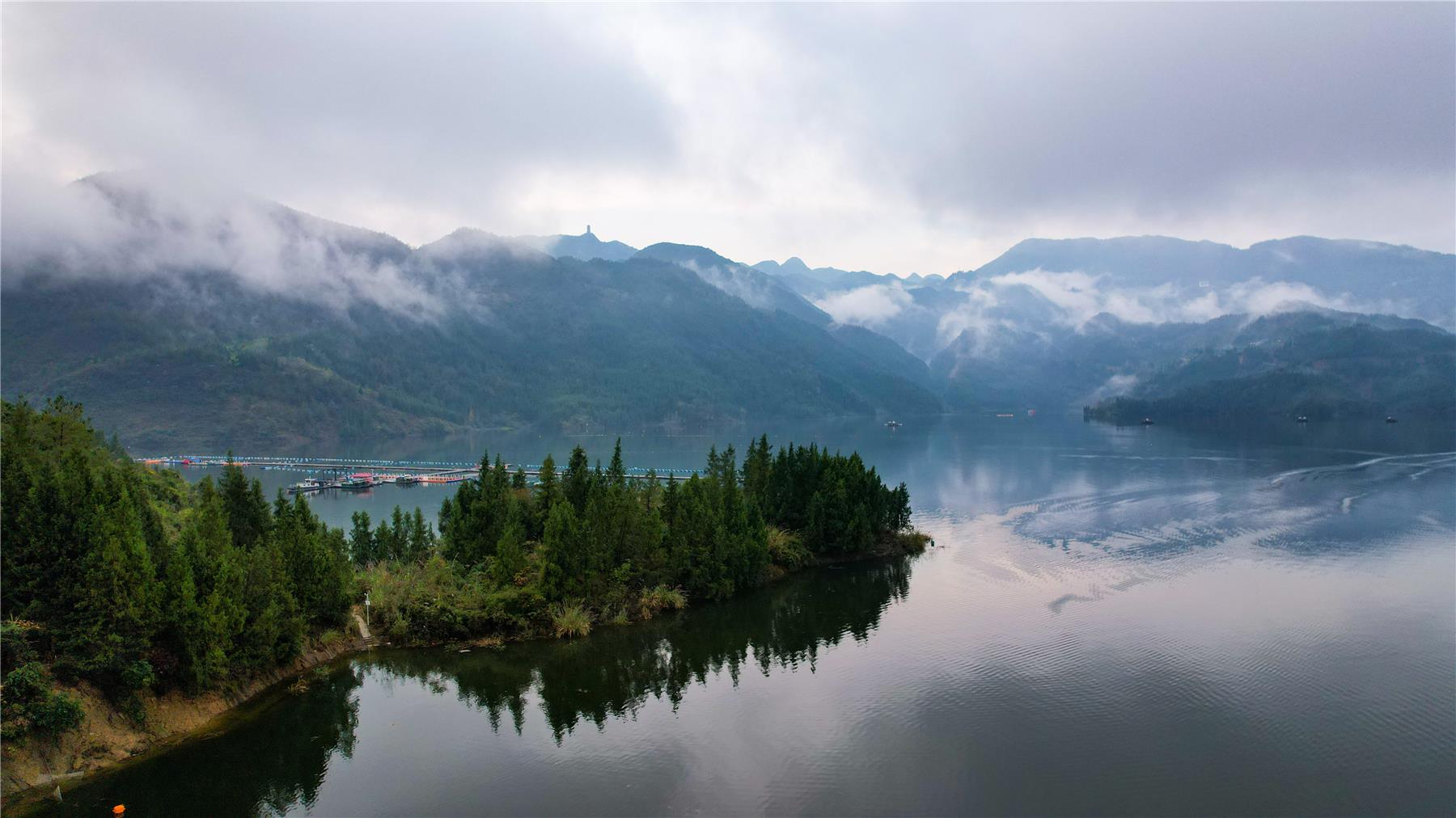從空中俯瞰,兩岸青山如黛,一湖碧水如鏡。云霧飄渺,湖泊、山丘、村莊在云海中若隱若現(xiàn),宛如畫卷,美不勝收。湖作青羅帶,生態(tài)優(yōu)美的清水湖如一條青綠色的綢帶,云霧鋪展在碧綠的湖面上,云起云落間,恍若給清水湖蒙上了一層朦朧的“面紗”。輕盈的薄霧蕩漾在湖面上,一葉扁舟駛過,在江心劃過一道白線,霧鎖深山,水清岸綠,舟行碧波上,人在畫中游。