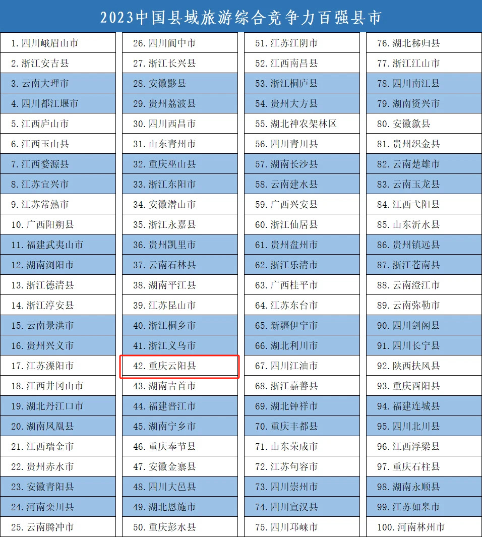“2023年中國(guó)縣域旅游綜合競(jìng)爭(zhēng)力百?gòu)?qiáng)縣市”名單