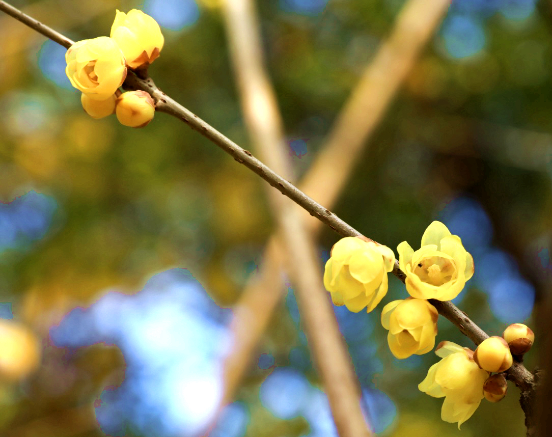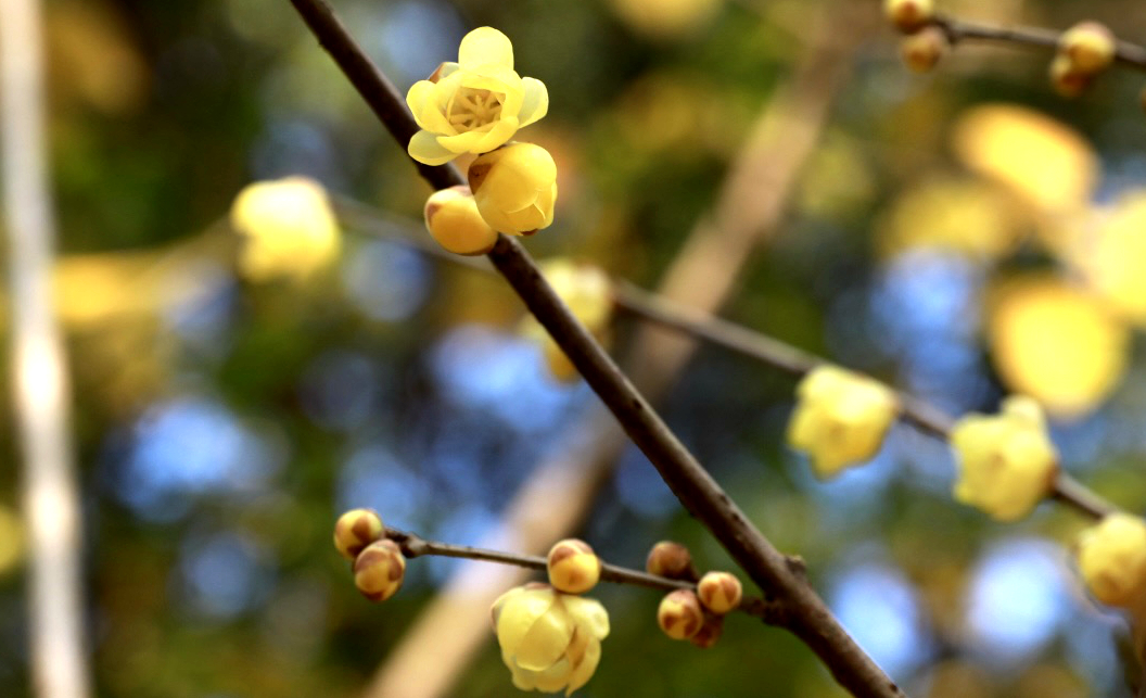 據(jù)了解,蠟梅是一種非梅類的花卉,因其與梅花同時開放,花香相近,且顏色似蜜蠟而得名。