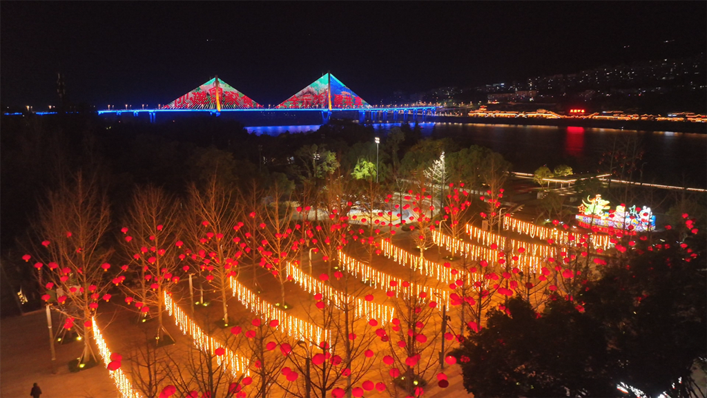 云陽網(wǎng)訊(記者 徐銳 劉婷 趙泰庵)當(dāng)龍年新春的鐘聲即將敲響,璀璨燈飾把地處三峽庫區(qū)腹心的云陽裝扮成如花似錦的不夜天,人們?cè)诿篮谩⑾槿鸬姆諊邢灿麓旱牡絹怼?br/>