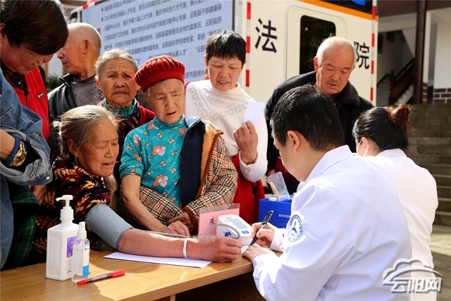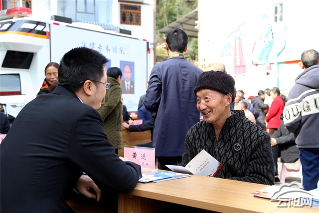 云陽(yáng)網(wǎng)訊(記者 何曉蓉 王小艷)山鄉(xiāng)春日,暖陽(yáng)和煦。3月28日上午9點(diǎn)半,清水土家族鄉(xiāng)龍洞村黨群服務(wù)中心院壩內(nèi)人聲鼎沸,一場(chǎng)特殊的“義診”活動(dòng)正熱火朝天地進(jìn)行著,來(lái)自全縣數(shù)名法官、醫(yī)生、人大代表和政協(xié)委員齊聚一堂,為當(dāng)?shù)厝罕姟鞍衙}問(wèn)診”,面對(duì)面解民需、聽(tīng)民意、惠民生。
