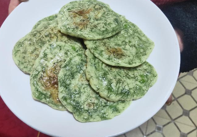 茴香嫩葉與糧食一并打磨,做成漿水后發(fā)酵,冷水加熱上鍋蒸制而成,顏色好,味道清香,一般在端午節(jié)前蒸制,也稱端午粑;還有一種做法是加面粉做成面餅,包上餡料,最有特色的就是放入臘肉,是堰坪民間一種獨(dú)特的名小吃,一般用來招待嘉賓或者貴客。