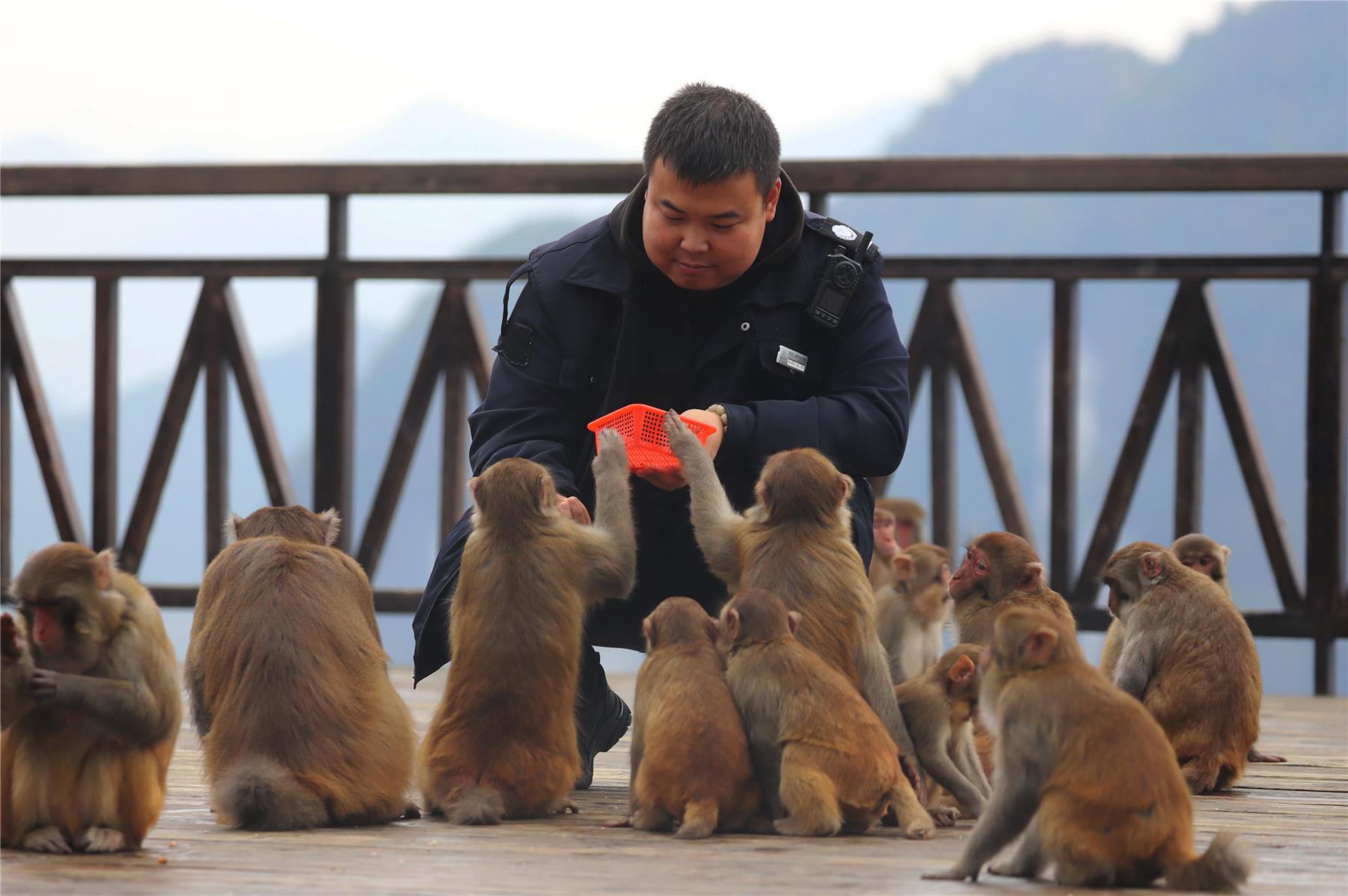 “到了冬天沒有足夠的食物,猴群就從山上轉(zhuǎn)移到了山下,景區(qū)專門安排了專門的飼養(yǎng)人員,設(shè)置了9個不同的投食點,每天投放食物。這樣,猴子就有足夠的食物,安穩(wěn)地度過這個冬天了。”扶泊慶介紹道,就這樣,飼養(yǎng)人員定時喂養(yǎng),成群的猴子每天來此覓食,已經(jīng)成為了景區(qū)內(nèi)一道有趣的風(fēng)景線。