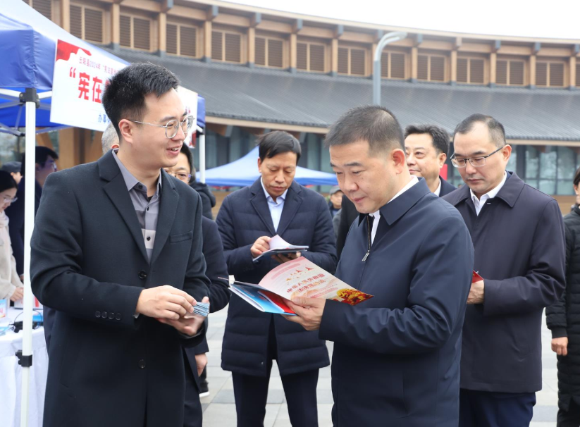 陳道彬來到“憲學(xué)憲用”普法加油站,認(rèn)真觀看各參展單位宣傳內(nèi)容,并與有關(guān)部門負(fù)責(zé)人深入交流,詳細(xì)了解“憲法宣傳周”活動開展情況。陳道彬強(qiáng)調(diào),憲法是國家的根本法、治國安邦的總章程,開展憲法宣傳教育是全面貫徹實(shí)施憲法的重要基礎(chǔ)性工作。全縣各級各部門要堅(jiān)持以習(xí)近平新時代中國特色社會主義思想為指導(dǎo),全面貫徹落實(shí)黨的二十屆三中全會精神,深入踐行習(xí)近平法治思想,大力加強(qiáng)憲法宣傳教育,弘揚(yáng)憲法精神,維護(hù)憲法權(quán)威,推動憲法全面貫徹實(shí)施,為奮力建設(shè)“一地三區(qū)兩城”現(xiàn)代化新云陽營造良好法治環(huán)境。要注重宣傳質(zhì)效,抓住學(xué)校、社區(qū)、媒體等重點(diǎn)陣地,全方位、多聲部開展宣傳教育活動,持續(xù)豐富形式載體,增強(qiáng)全民法治意識,真正使憲法走入日常生活、貼近人民群眾。要強(qiáng)化示范引領(lǐng),充分發(fā)揮“關(guān)鍵少數(shù)”作用,加強(qiáng)新時代法治隊(duì)伍建設(shè),推動領(lǐng)導(dǎo)干部帶頭尊崇憲法、學(xué)習(xí)憲法、遵守憲法、維護(hù)憲法、運(yùn)用憲法。要壓實(shí)普法責(zé)任,嚴(yán)格落實(shí)意識形態(tài)工作責(zé)任制,全面落實(shí)“誰執(zhí)法誰普法”普法責(zé)任制,確保憲法宣傳教育的正確政治方向和輿論導(dǎo)向。