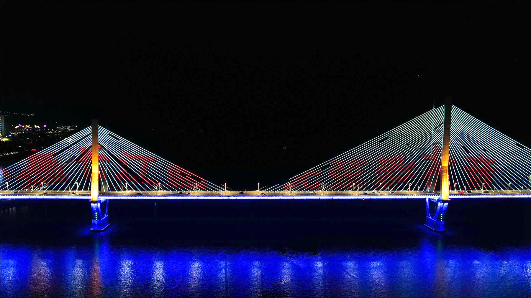 當(dāng)夜幕降臨,華燈初上,云陽縣長江大橋,上萬余盞景觀燈具將大橋裝扮一新,大橋懸索兩側(cè)霓虹閃爍,五彩斑斕,以橋為屏,用燈光為墨,科技感與時尚感交融的燈光秀給城市增添了一道亮麗的風(fēng)景線,吸引了不少市民紛紛駐足觀看。