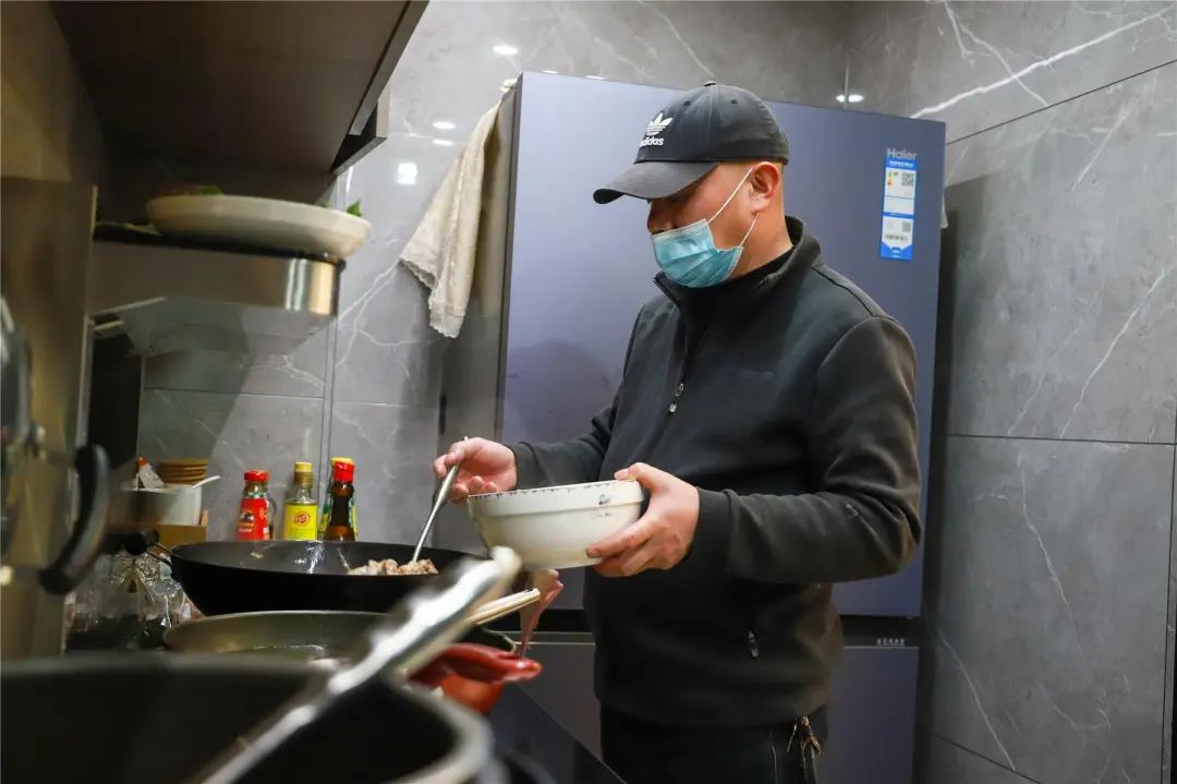 下午兩點(diǎn),王文祥準(zhǔn)時(shí)到達(dá)了全女士家中,在她的引導(dǎo)下徑直走進(jìn)廚房,將口罩調(diào)整戴嚴(yán)實(shí)后,再次將手洗干凈,迅速找到調(diào)料、洗菜盆、鍋具炊具等的位置,樂呵呵地說:“你啥都不用管了,接下來就交給我吧?!笨戳艘幌伦蛱煊涗浀牟藛?,王文祥便開始行動(dòng)起來,清洗、切菜、炒菜……只見王文祥動(dòng)作熟練,有條不紊。