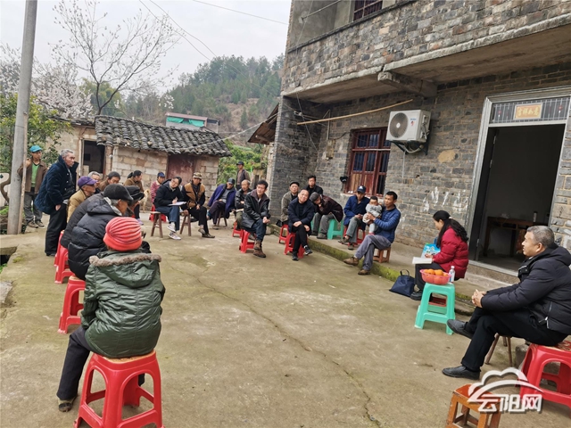 院壩會上,團堡村黨支部書記圍繞移風(fēng)易俗、醫(yī)療保險、反詐知識等黨的政策進行宣講,對群眾不明白的問題耐心解答。隨后,該村包片領(lǐng)導(dǎo)就近期村民最關(guān)心的產(chǎn)業(yè)路修建問題作出回應(yīng)。“我們于去年12月和今年1月份向上級相關(guān)部門爭取修路項目,請大家少安毋躁,多一些耐心,我們一起解決問題。”與會群眾也暢所欲言,紛紛發(fā)表自己的意見和看法,“院壩會”成為群眾的“問策會”,在“面對面”交流的場景中,鎮(zhèn)村干部將黨的政策傳到了群眾心坎上,為全鎮(zhèn)各項工作的開展奠定了堅實的群眾基礎(chǔ)。