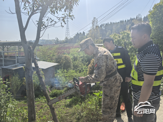 上午9時(shí),演練指揮部接到“火情警報(bào)”,朝陽(yáng)社區(qū)某地因高溫干燥引發(fā)火情,火勢(shì)迅速蔓延。隨著指揮長(zhǎng)一聲令下,基干民兵應(yīng)急分隊(duì)迅速集結(jié),攜帶風(fēng)力滅火機(jī)、高壓水槍、油鋸、抽水泵等裝備趕赴“火場(chǎng)”。