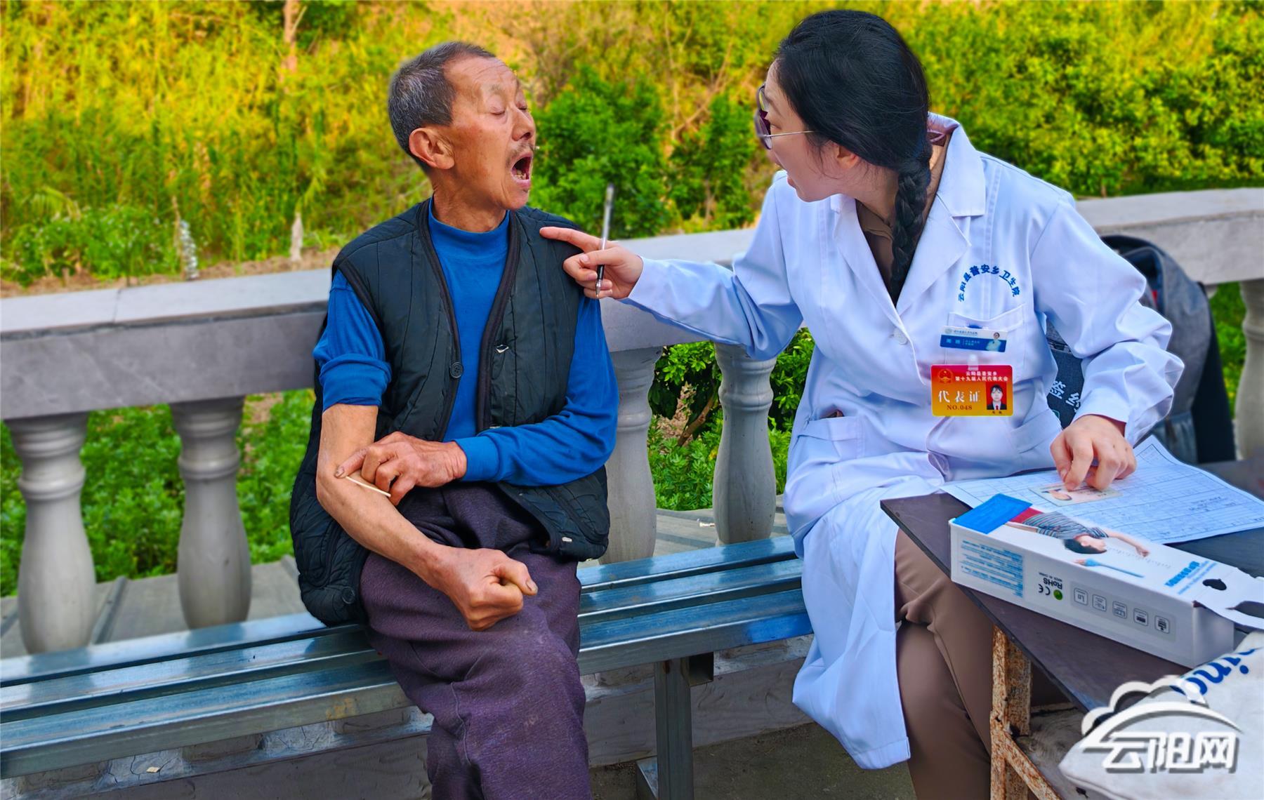 活動(dòng)結(jié)束后,周艷顧不上休息,又馬不停蹄地奔赴村民家中,對(duì)患有高血壓、糖尿病等慢性疾病的村民開展重點(diǎn)隨訪。在村民吳大恒家,她仔細(xì)查看病例、測(cè)量血壓、檢測(cè)血糖,詳細(xì)了解病情控制情況,并根據(jù)中醫(yī)體質(zhì)辨識(shí)結(jié)果為其提供個(gè)性化中醫(yī)防治方案?!按蟛?,您最近飲食一定要清淡,鹽得少放,多喝枸杞菊花茶,每天抽點(diǎn)時(shí)間出去散散步,對(duì)控制血壓有好處?!敝芷G反復(fù)叮囑,并以通俗易懂的語(yǔ)言,普及慢性病日常管理知識(shí),提醒注意事項(xiàng),將健康知識(shí)送到老人身邊?!霸诩议T口我就能做檢查,這種關(guān)懷切實(shí)暖到了心窩里!”吳大恒面帶感激,緊緊握住周艷的手說(shuō)道。