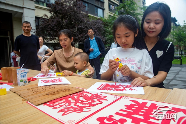10余對親子家庭帶領(lǐng)孩子來到一網(wǎng)格院壩,工作人員將事先印制好的“蓮(廉)”“竹(節(jié))”“梅(潔)”等字鋪在桌子上,工作人員向親子家庭講解傳統(tǒng)剪紙藝術(shù),以視覺符號強化廉潔認知,感知廉潔文化,讓居民在感受剪紙藝術(shù)的魅力,在活動中潛移默化接受廉潔教育。