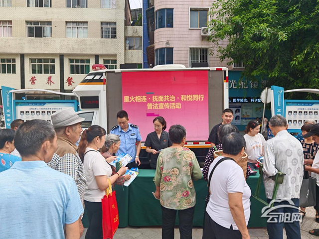 活動期間,普法流動宣傳車化身“移動法治課堂”,穿梭于轄區(qū)主街干道、廣場集市等人員密集區(qū)域,循環(huán)播放反詐、防邪、禁毒知識微視頻以及與群眾生活息息相關(guān)的勞動糾紛、婚姻家庭等法律知識和典型案例。在播放視頻的間隙,工作人員還向過往群眾發(fā)放《憲法》《民法典》等各類法治宣傳資料,并結(jié)合視頻內(nèi)容,用通俗易懂的語言為群眾講解法律知識,耐心解答群眾在日常生活中遇到的法律問題。