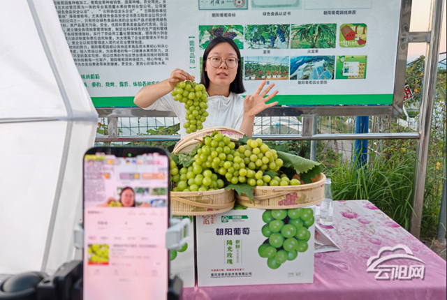 寶坪鎮(zhèn)鎮(zhèn)村干部紛紛化身成葡萄園里的“助農(nóng)主播”,帶領(lǐng)網(wǎng)友“走進(jìn)”朝陽葡萄園,直觀了解葡萄生長環(huán)境,近距離觀看葡萄掛果狀態(tài),讓網(wǎng)友們能看得明白、購得放心。