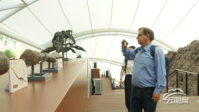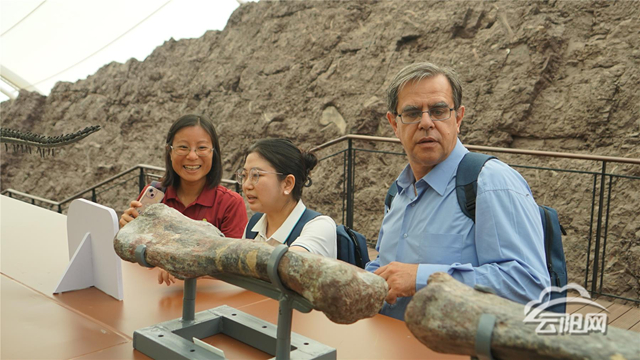 在云陽恐龍化石遺址館,長150米、高6至10米的侏羅紀原址化石墻震撼亮相,近5000塊化石密集鑲嵌,涵蓋蜥腳型類、獸腳類等五大類恐龍骨骼,構成完整的遠古恐龍群落。尼古拉斯?祖羅斯俯身觀察化石紋理時贊嘆:“這面‘恐龍化石長城’是全球侏羅紀地質研究的瑰寶,云陽建立的原址保護與展陳模式,為世界同類地質遺跡保護提供了優(yōu)秀范例?!弊鳛榭铸堁莼芯康年P鍵實證,此處已命名普安云陽龍、磨刀溪三峽龍等5個新屬新種,填補了早—中侏羅世恐龍演化序列空白。