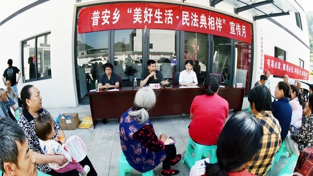 近日,縣人民法庭鳳鳴法庭的干警協(xié)同故陵司法、派出所,普安平安法治崗的相關(guān)普法人員,走進(jìn)普安鄉(xiāng)馬安社區(qū)、普安小學(xué)開(kāi)展“美好生活·民法典相伴”宣傳活動(dòng)。