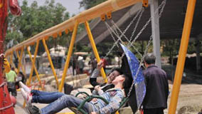 秋千總長度近400米,共設(shè)置了近200余個座位可供市民同時休閑玩耍。[詳細]