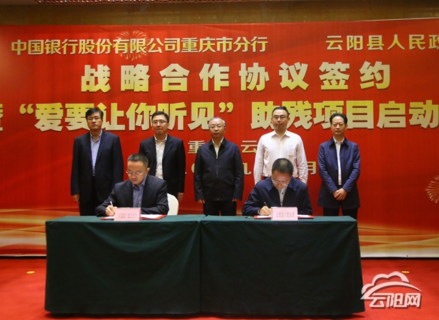 儀式上,中國銀行重慶市分行與云陽縣人民政府簽訂戰(zhàn)略合作協(xié)議,捐贈(zèng)助殘扶貧資金30萬元,捐贈(zèng)泥溪鎮(zhèn)協(xié)合村村民院落修繕20萬元。