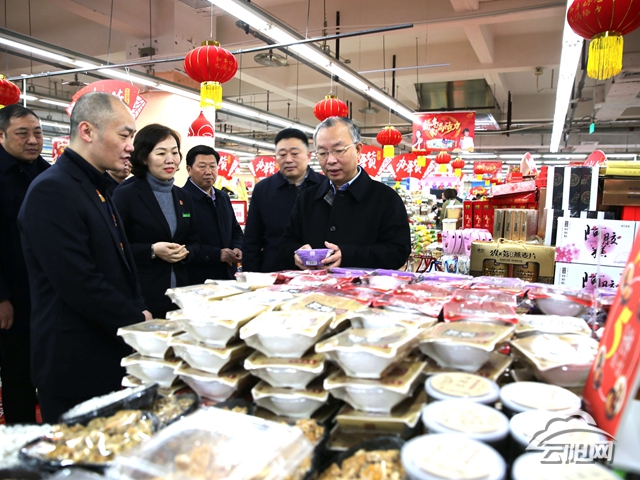 在重百商場云陽店,張學鋒親切地為員工們送上節(jié)日問候,詢問節(jié)日期間超市食品、用品和菜蔬供給情況,仔細檢查食品安全情況,要求相關單位要落實安全責任制,全力抓好春節(jié)期間物資保供工作,企業(yè)要加強對員工的消防安全教育,全面落實好各項安全措施,確保春節(jié)期間食品市場祥和穩(wěn)定。